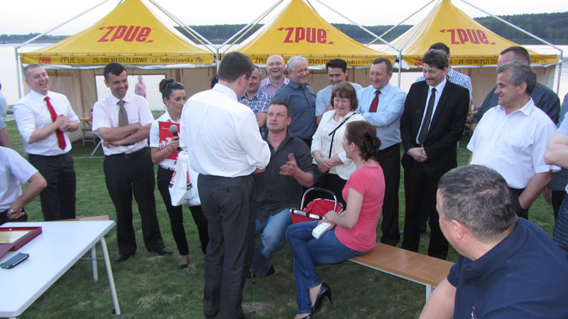 Marcin Skoczek ZPUE S.A. współorganizatorem XVII Konferencji Naukowo –Technicznej Stowarzyszenia Elektryków Polskich. 10 maja w Busku -Zdroju odbyła się XVII Konferencja Naukowo Techniczna Stowarzyszenia Elektryków Polskich. W programie piątkowego szczytu znalazły się ciekawe prelekcje dotyczące odnawialnych źródeł energii, głównie ogniw słonecznych, czyli tzw. mikrostacji fotowoltaicznych. Obchodzono również jubileusz 25- lecia ZPUE. Prezes Andrzej Grzybek otrzymał z rąk Czesława Maja, dyrektora buskiego Zakładu Energetycznego pamiątkowy grawerton z tej okazji. Goście wzięli także udział w kolacji w ośrodku szkoleniowo- wypoczynkowym w Chańczy, połączonej z obchodami 25 –lecia. Na uczestników czekało mnóstwo atrakcji – między innymi kursy motorówką po jeziorze oraz zabawne konkursy z nagrodami związane z działalnością firmy i wiedzą o ZPUE. Poprzednia strona: Złoto dla drużyny piłkarskiej ZPUE S.A. / Grupa KORONEA Poprzednia Następna strona: ZPUE na targach Expopower w Poznaniu Następna
